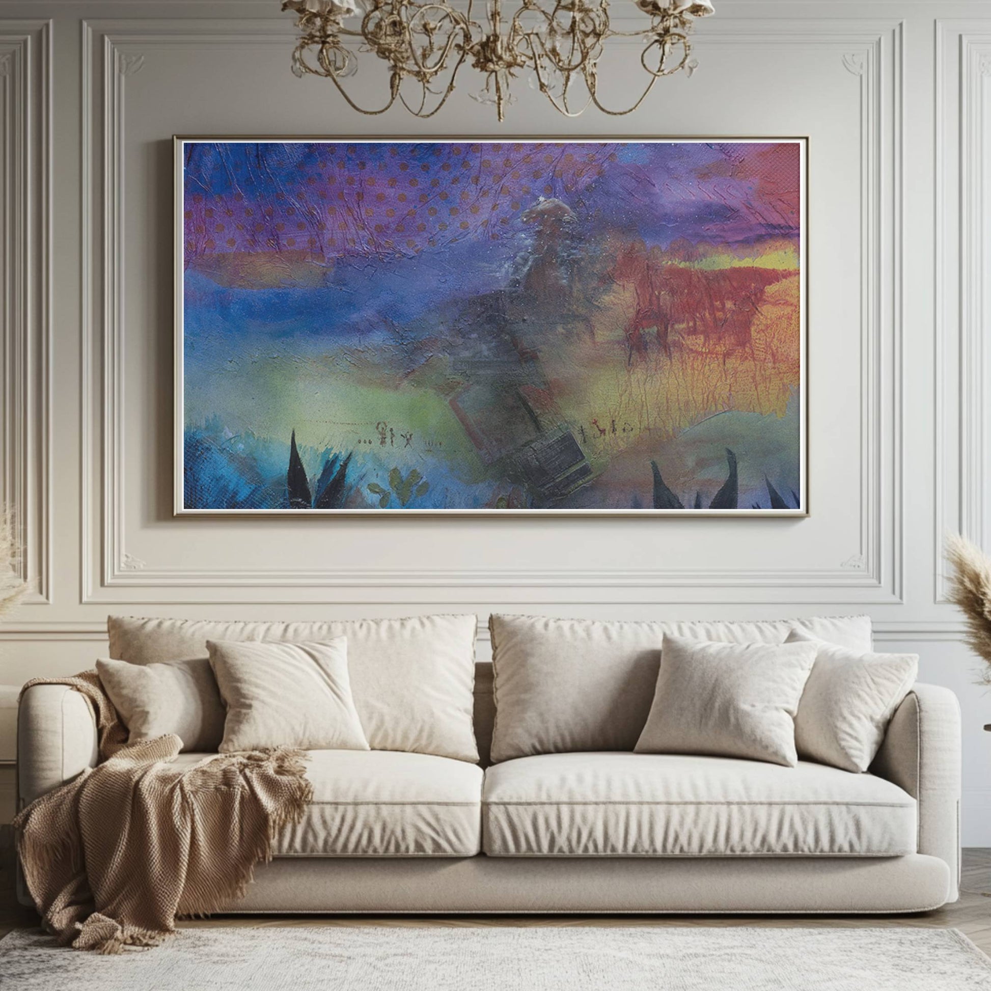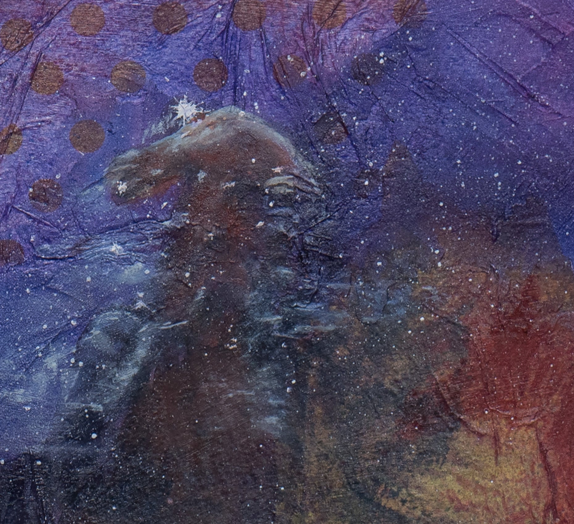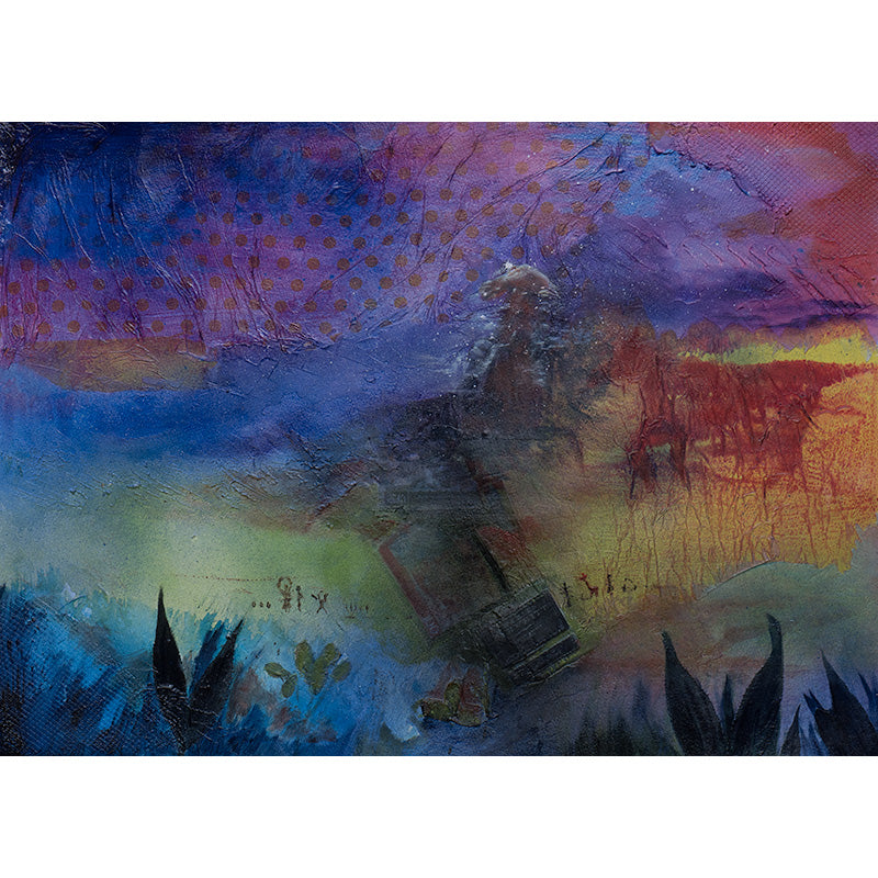 The painting is an abstract representational piece that represents the eternal nature of time and the interplay of light, age and distance.