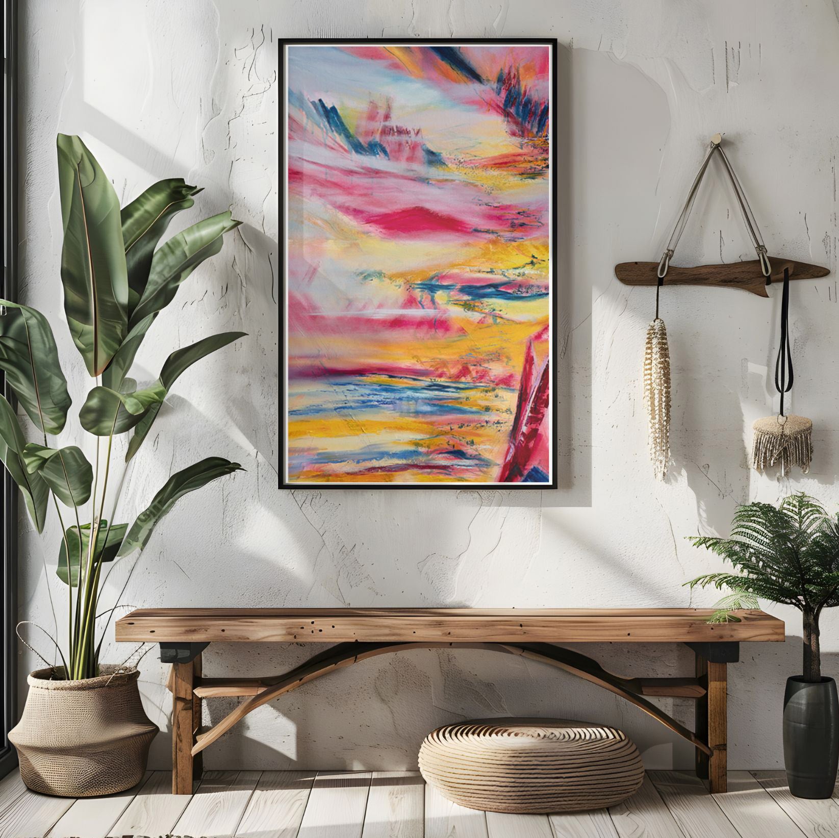 You may choose it supplied as a rolled canvas or stretched and ready to hang. See information.