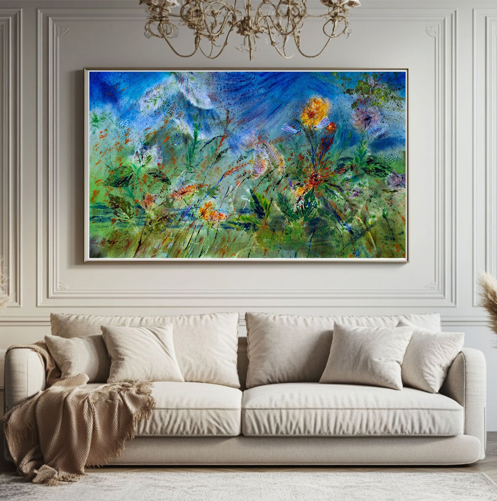 You may choose it supplied as a rolled canvas or stretched and ready to hang. See information.