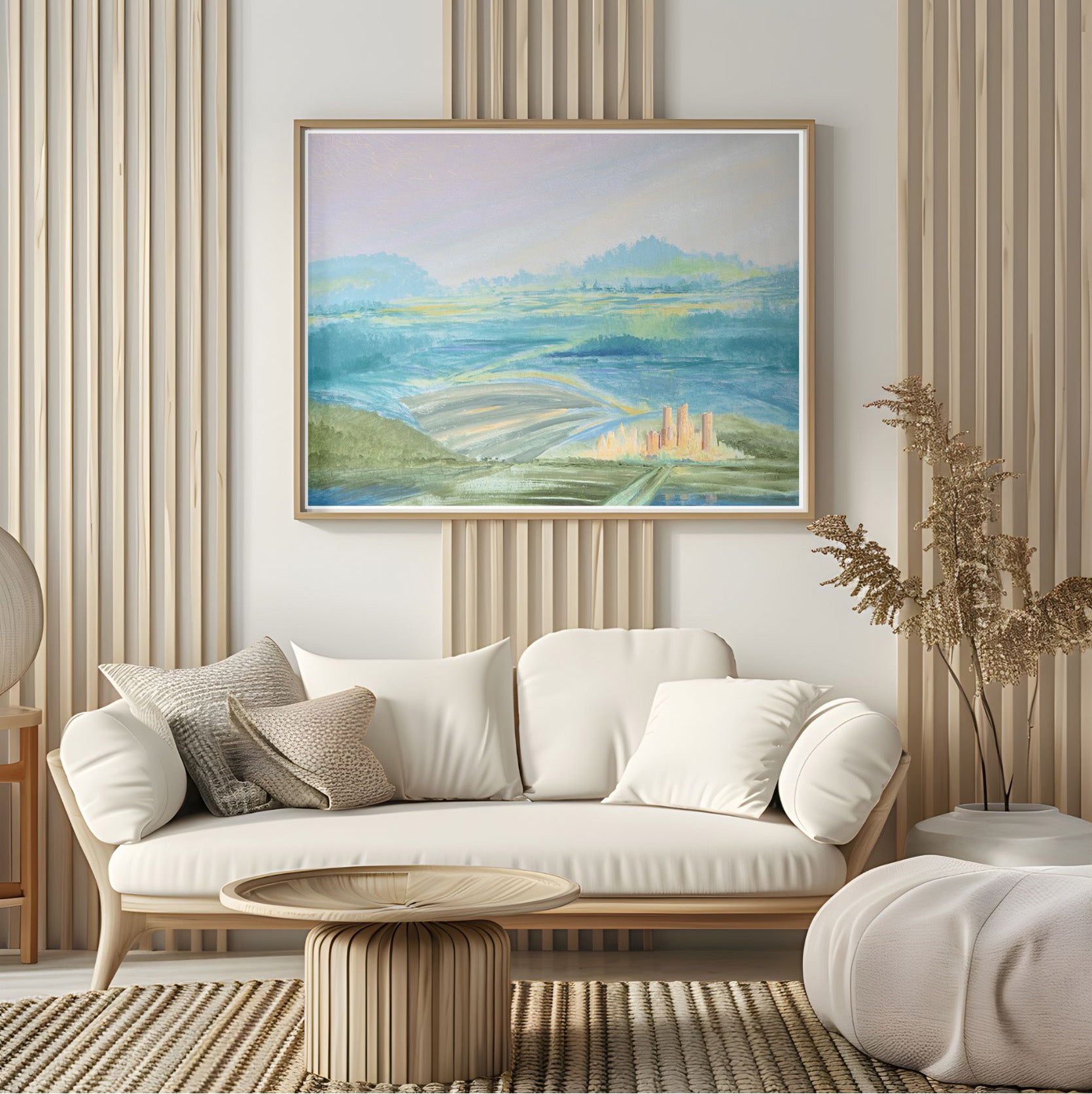 You may choose it supplied as a rolled canvas or stretched and ready to hang. See information.