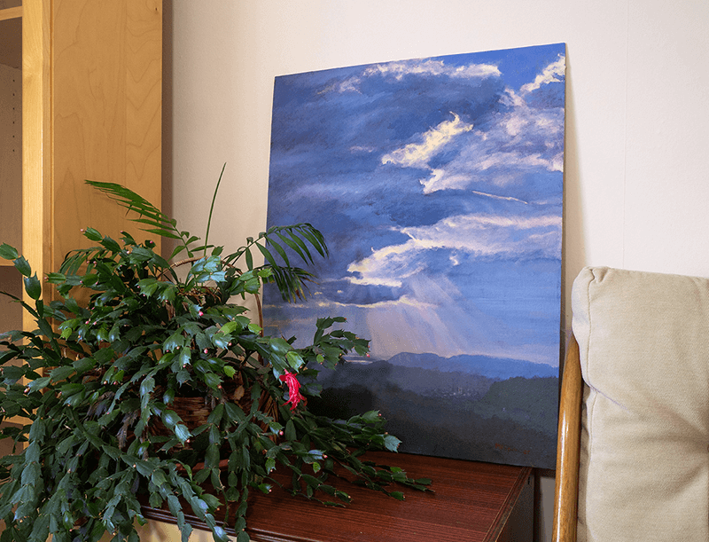 Oil colour on a bespoke canvas panel. 60x76cm